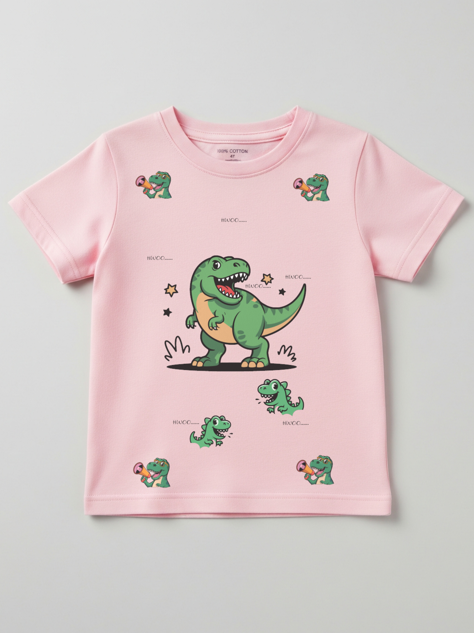 Baby Pink Dinosaur Print T-shirt Pure Cotten. RivenRioOriginal