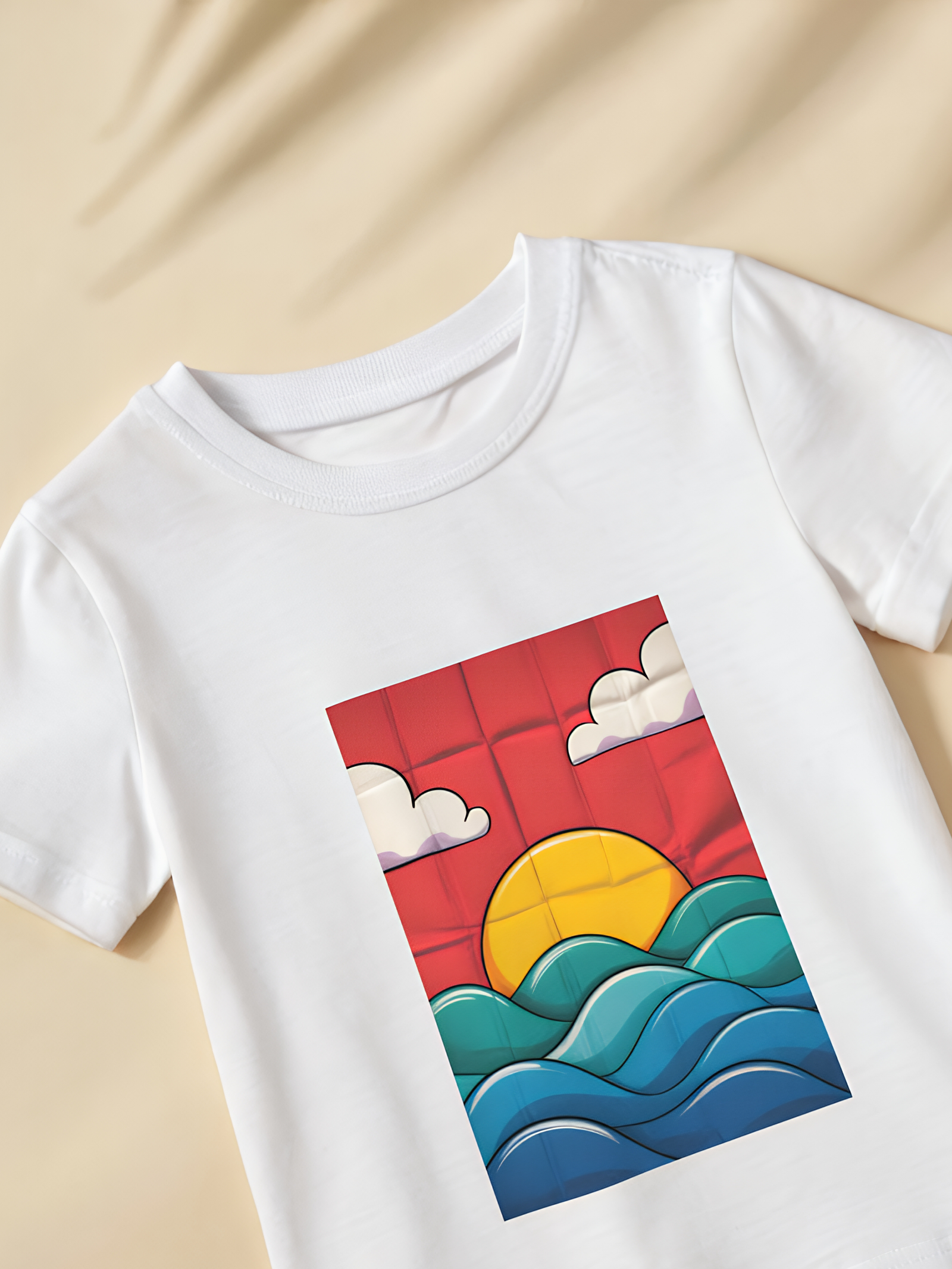 White Color Round Neck Sunset Printed T-shirt Pure Cotten. RivenRioOriginal