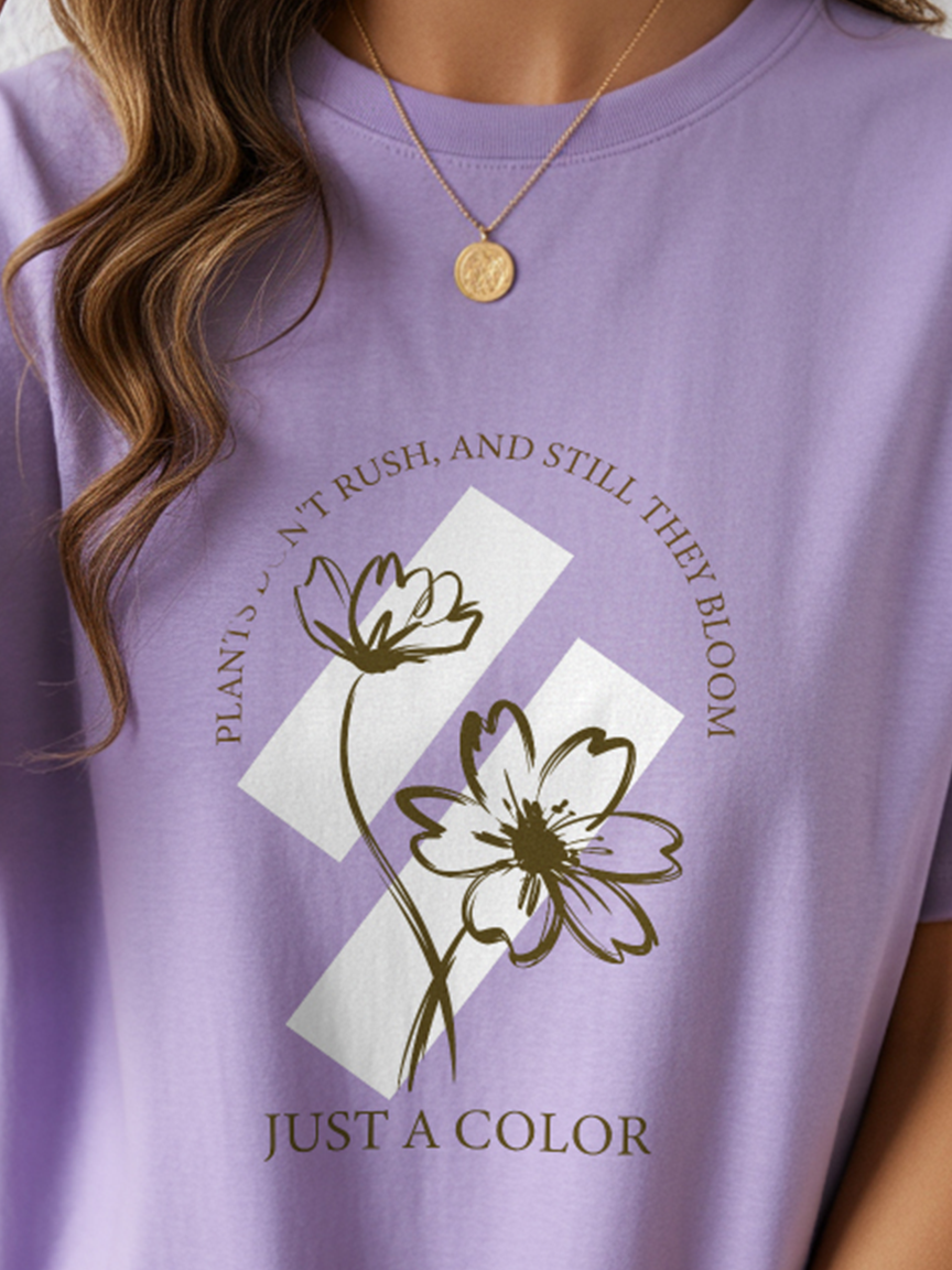 Women Lavender Flower Printed Oversize T-shirt. Stylish And Comfort. RivenRioOriginal