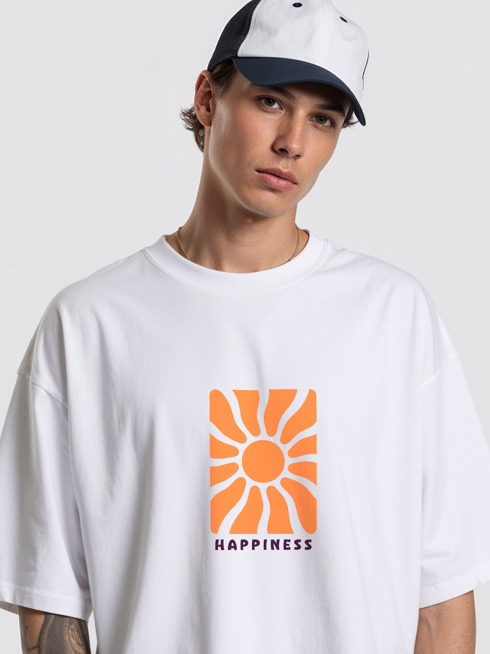 White Color Chest Aesthetic Printed Oversize T-shirt. Stylish And Comfort. RivenRioOriginal