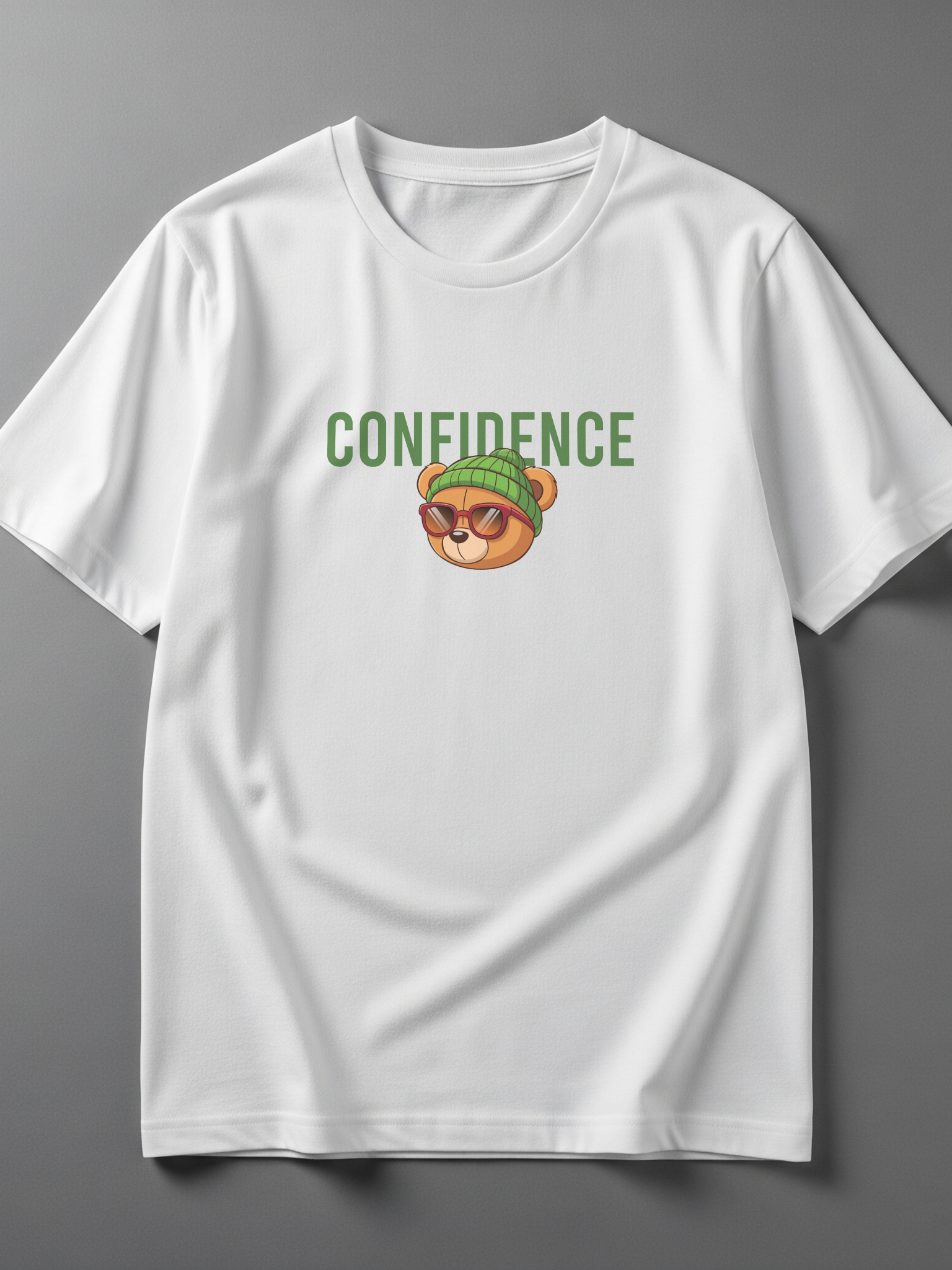 Round Neck Pure Cotton White Regular Cute Bear Printed T-Shirt. Stylish And Comfort. RivenRioOriginal
