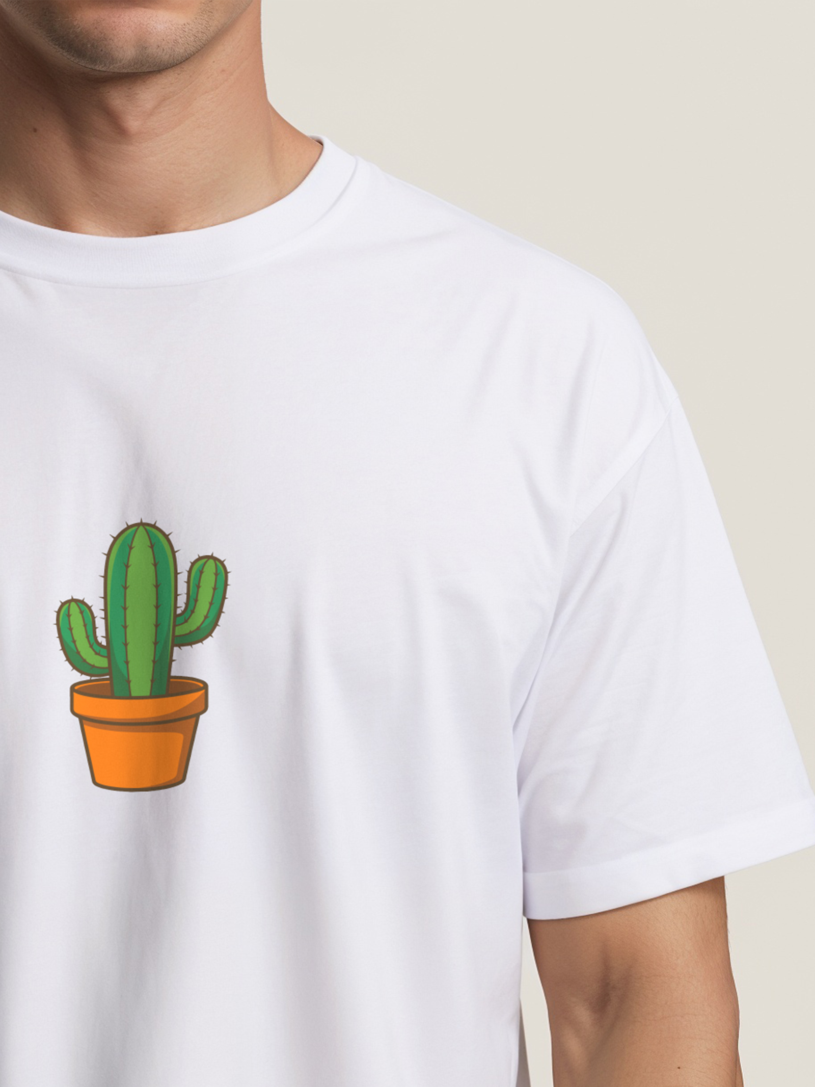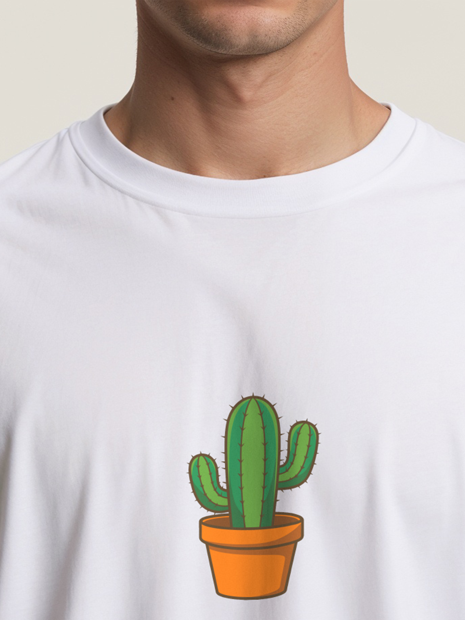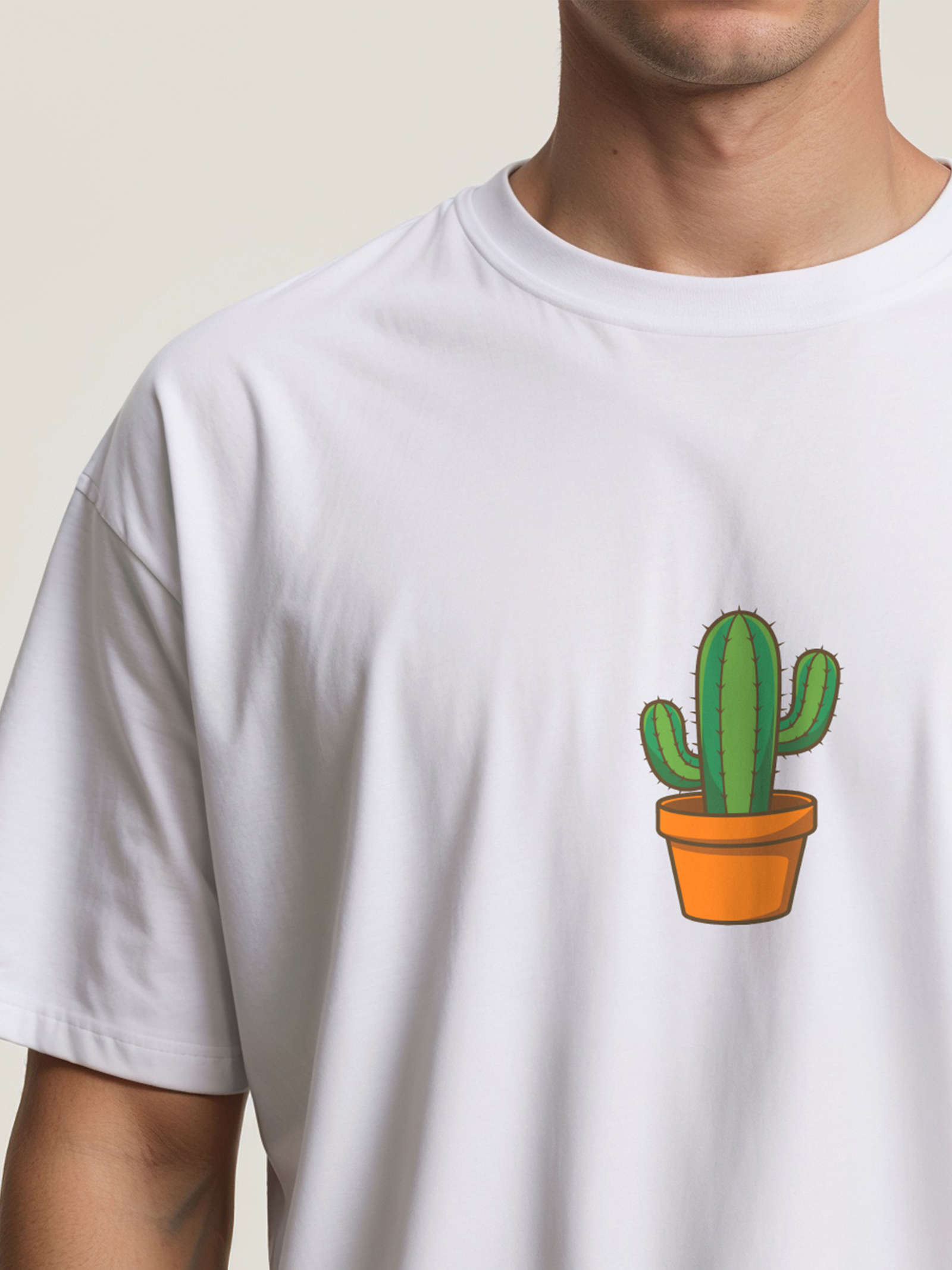 Regular Fit White Cactus Print T-shirt. Stylish And Comfort. RivenRioOriginal