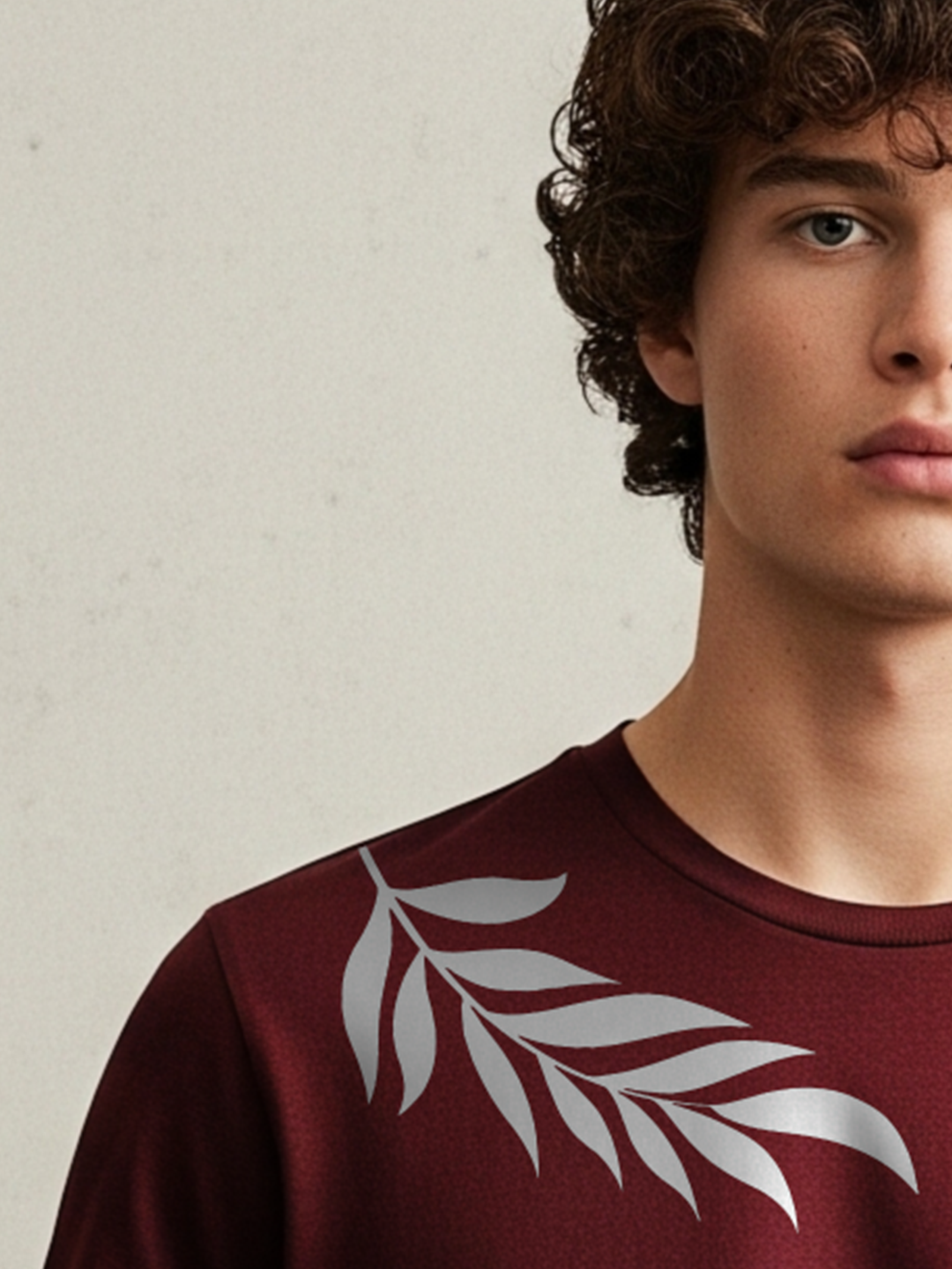 Round Neck Pure Cotton Maroon Regular Fit Graphic Print T-Shirt. Stylish And Comfort. RivenRioOriginal