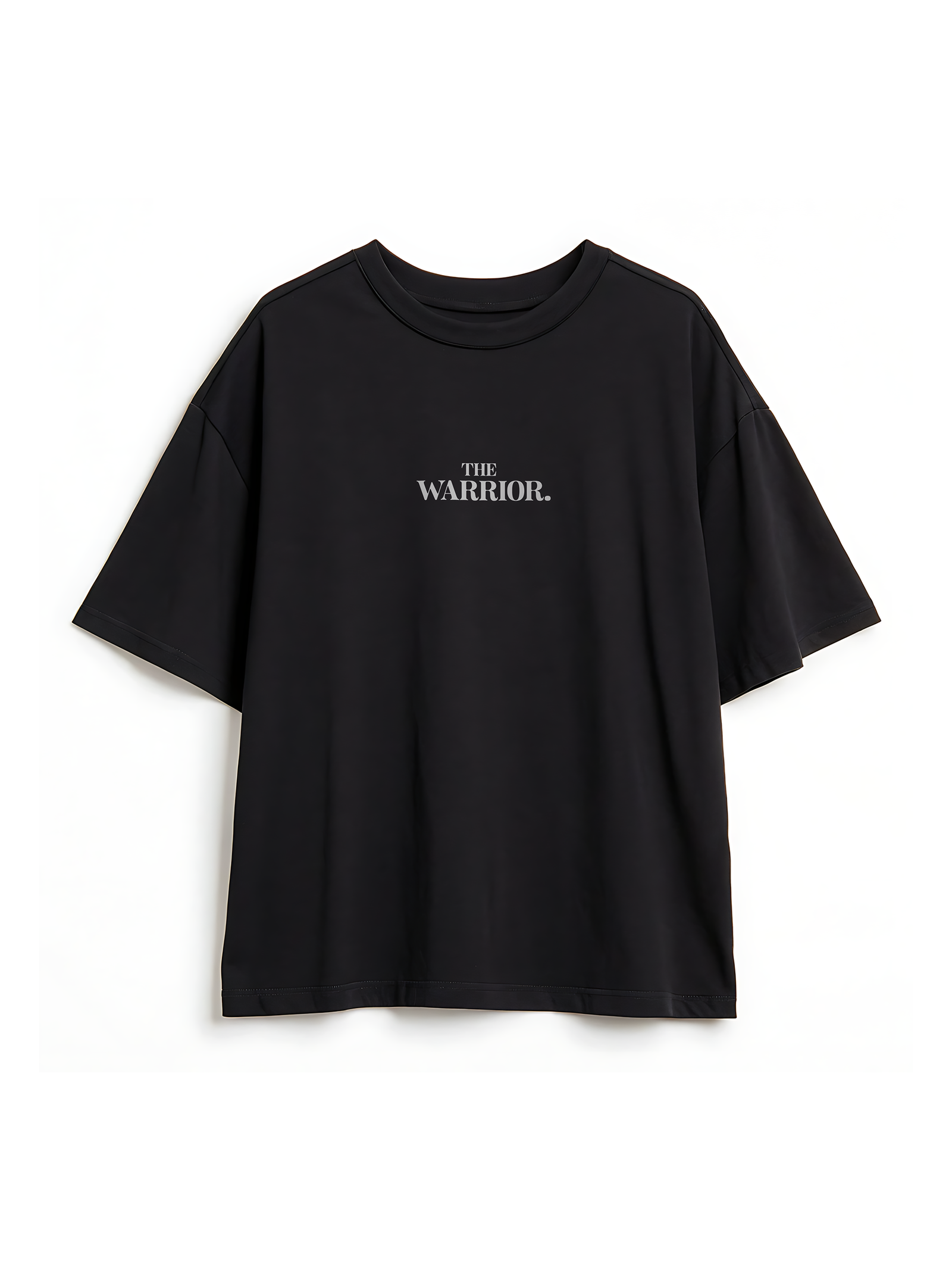 Street Wear Black Rond Neck Drop Shoulder The Warrior Graphic Print Oversize T-shirt. Stylish And Comfort. RivenRioOriginal