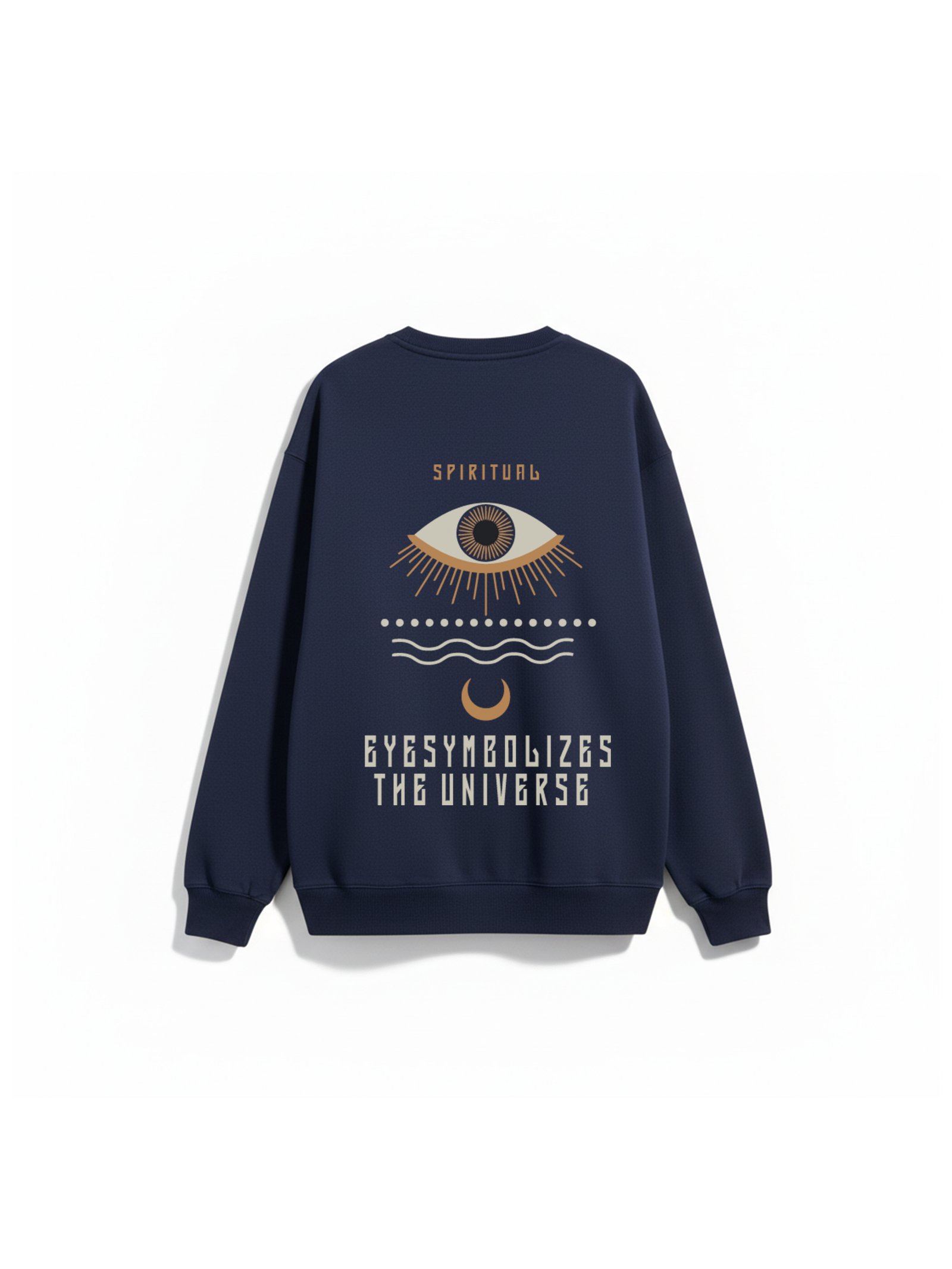 Elevate your style with this Spiritual Universe Eye Sweatshirt, designed for those who believe in intuition, cosmic energy, and deeper connection. Featuring a striking all-seeing eye graphic with golden rays, a crescent moon, and symbolic wave elements, this sweatshirt blends spirituality with modern aesthetic fashion. RivenRioOriginal