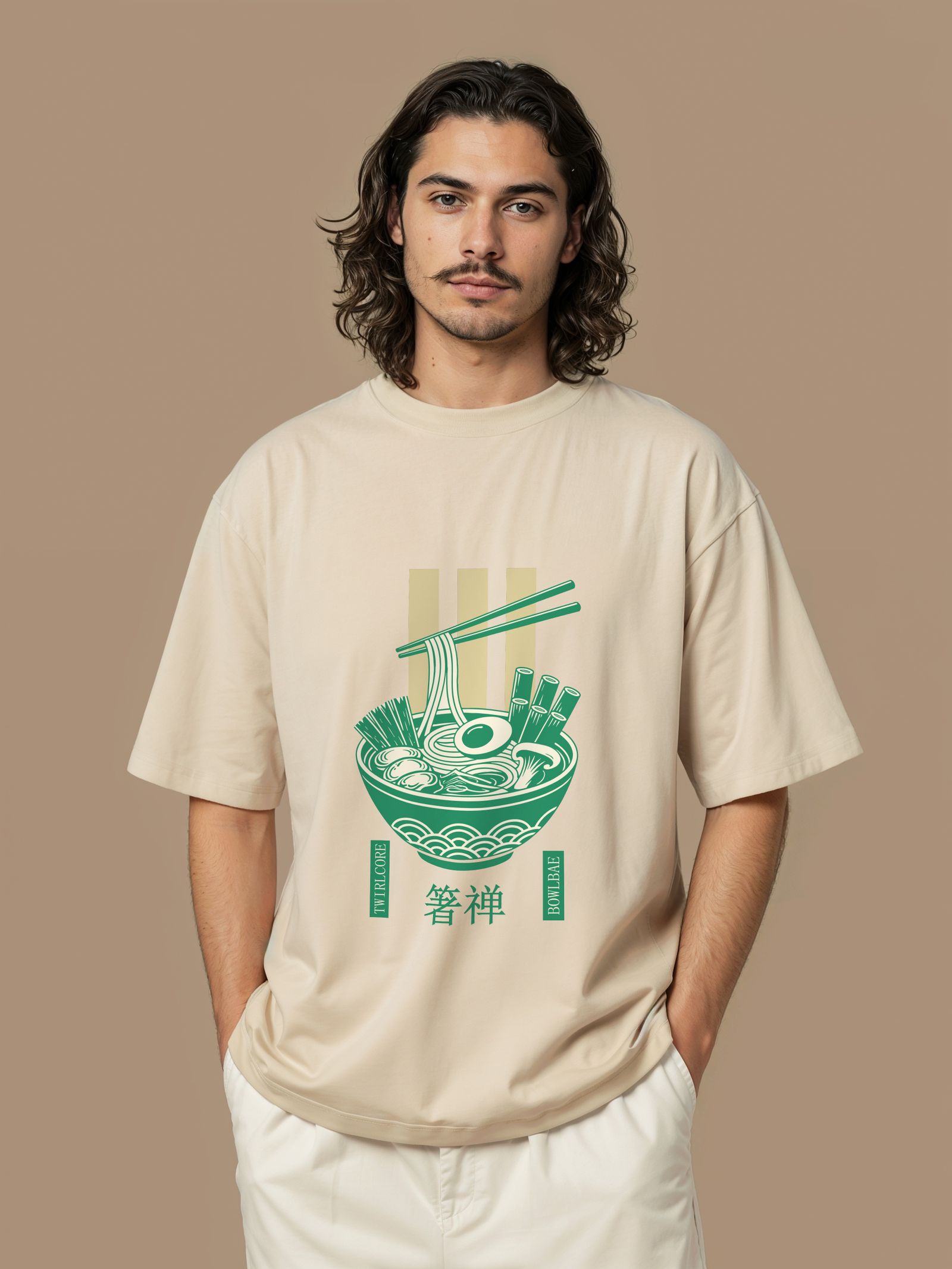 Beige Audio Cassette Graphic Printed Oversize T-shirt
