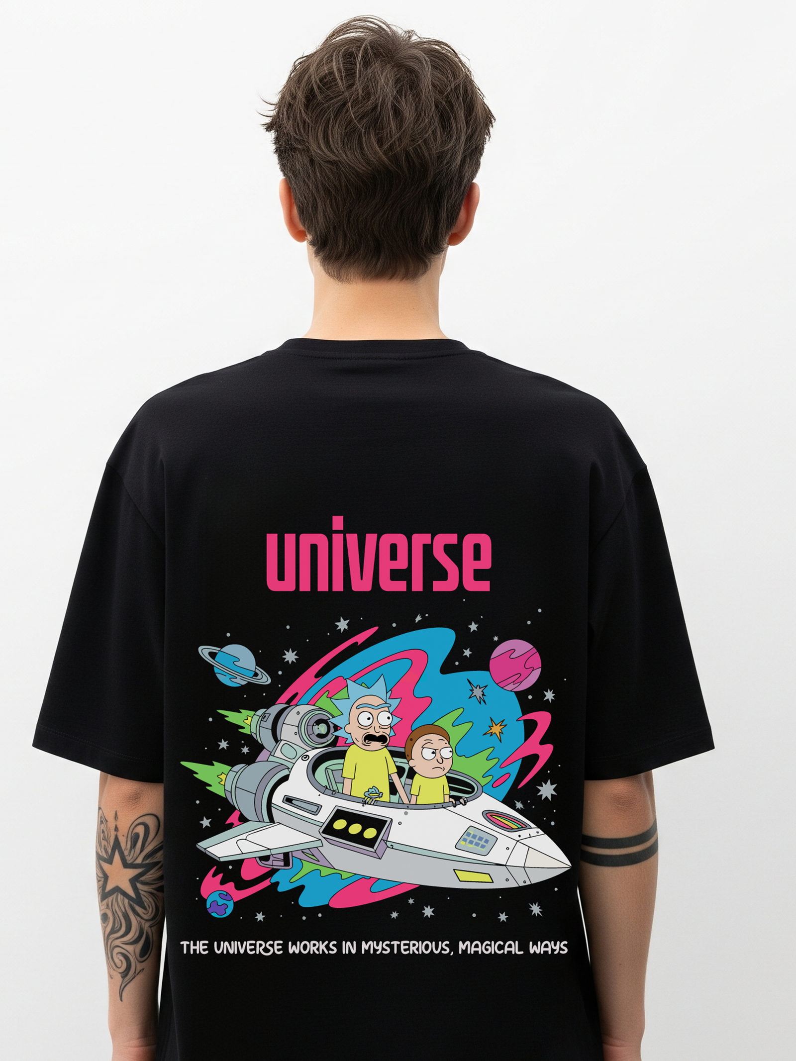 RivenRio Street wear Oversize Universe Graphic Print T-shirt