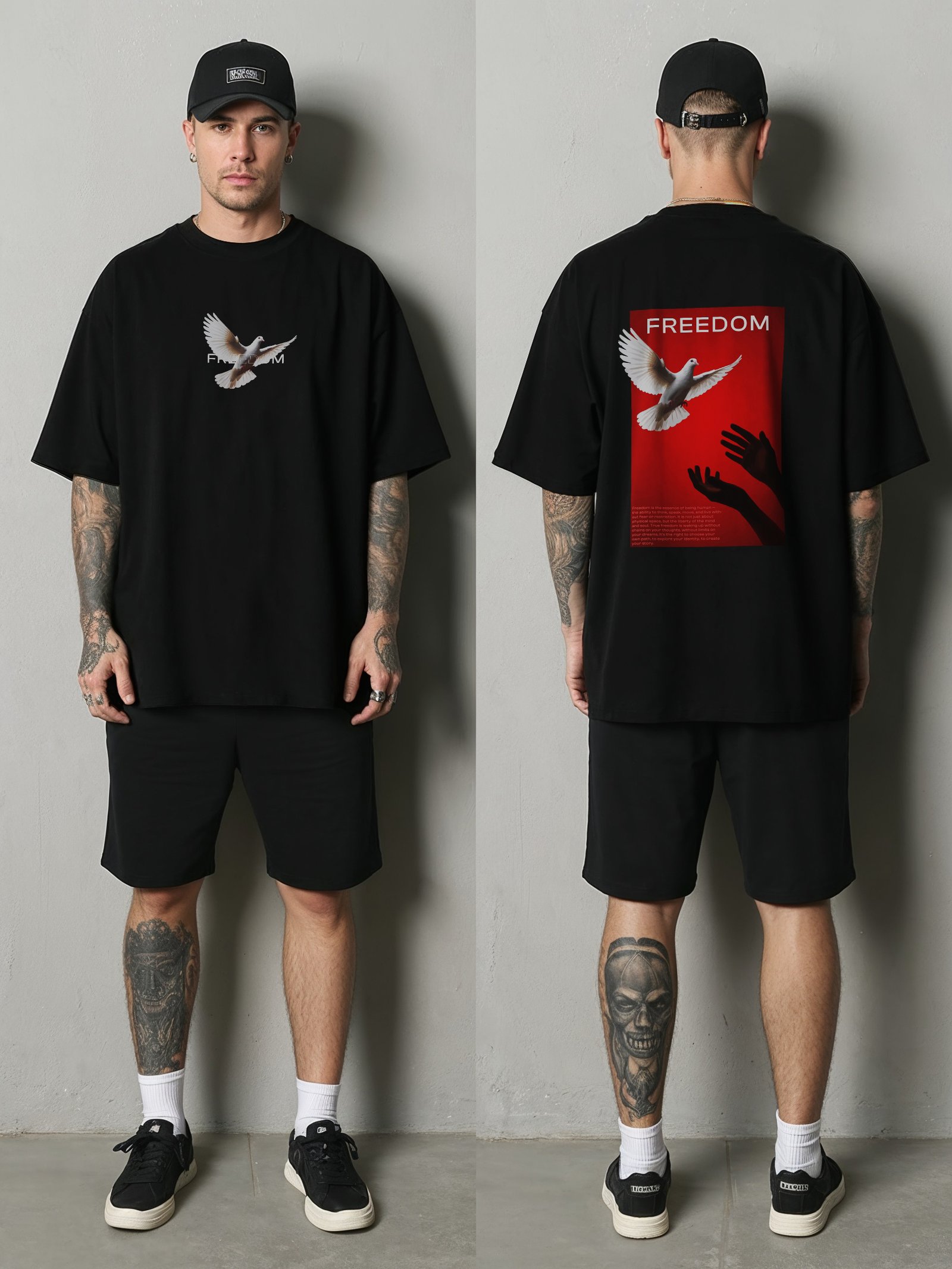 Men's Freedom Pigeon Printed Oversize T-shirt