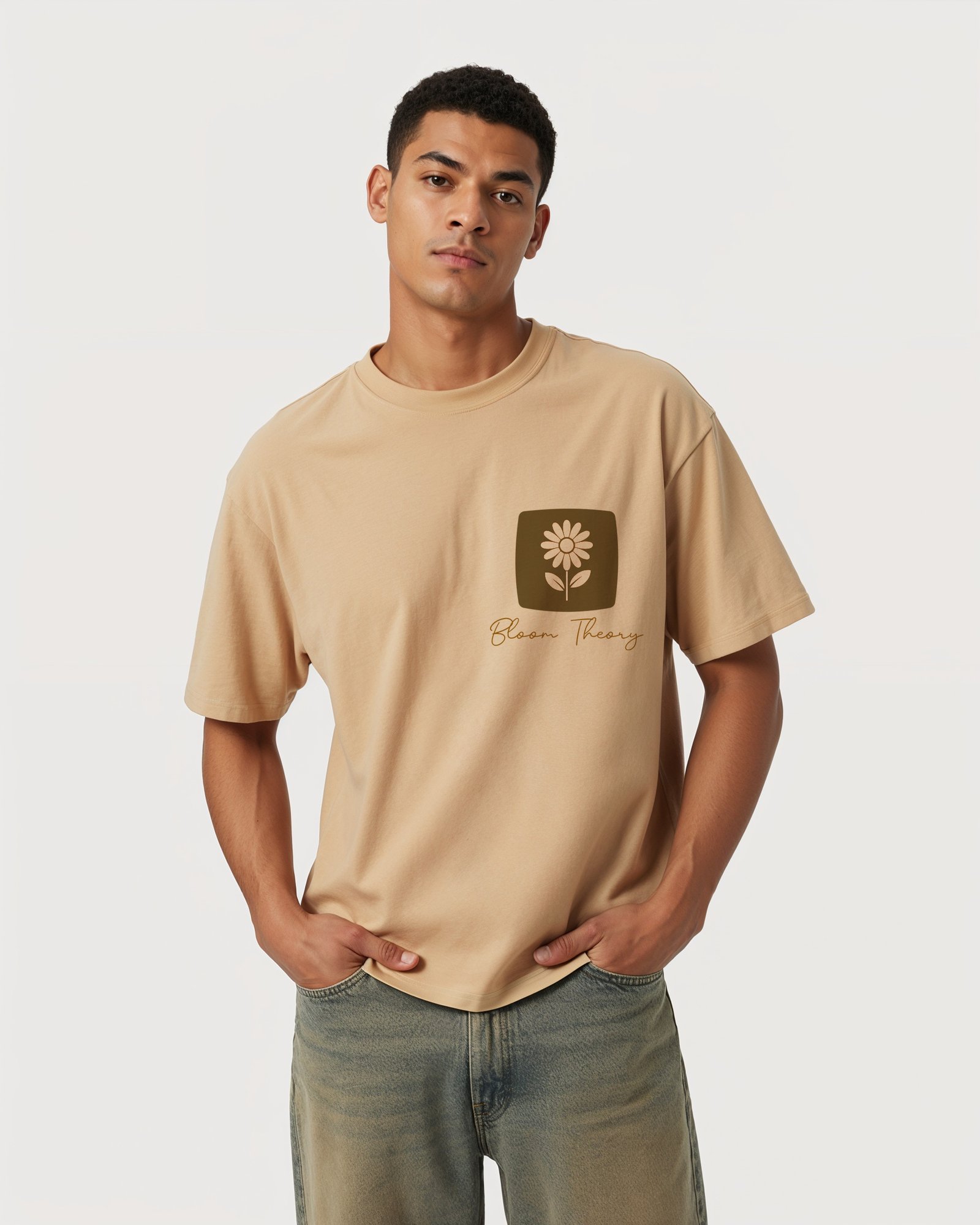 Beige Color Bloom Theory Printed Oversize T-shirt