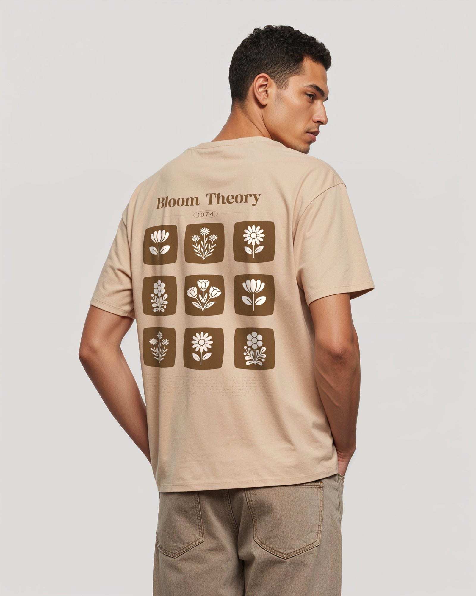 Beige Color Bloom Theory Printed Oversize T-shirt. Stylish And Comfort. RivenRioOriginal