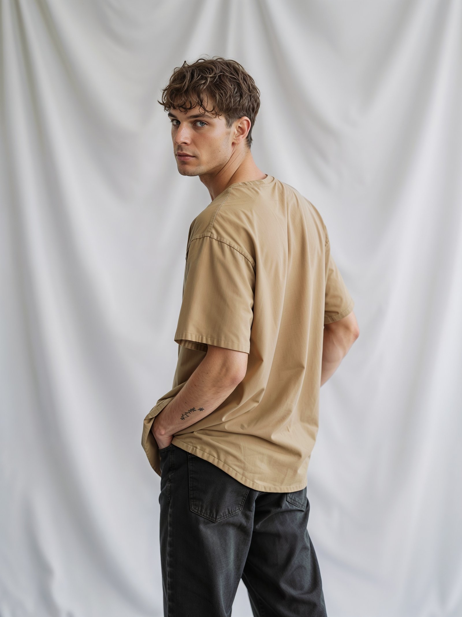 Men Beige Cool Graphic Print Oversize T-shirts. Stylish And Comfort. RivenRioOriginal