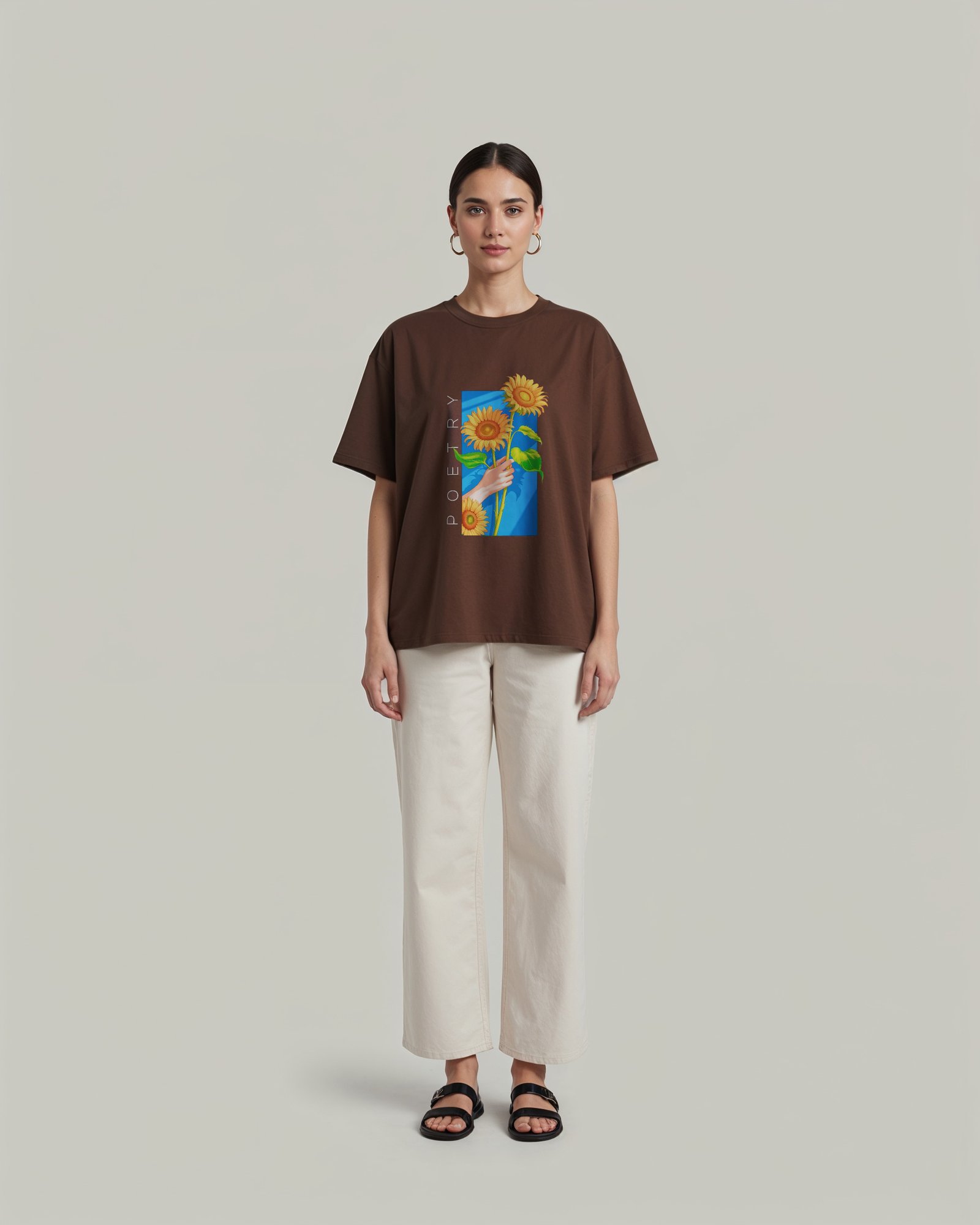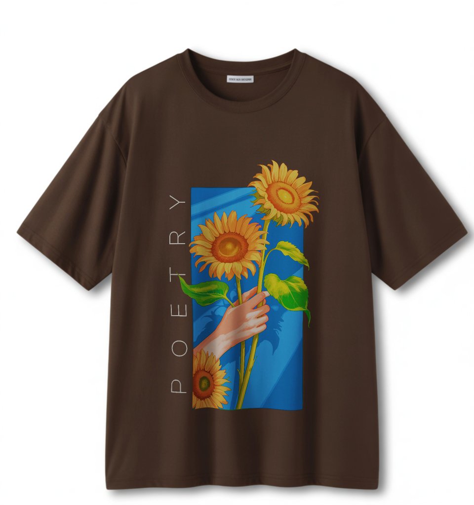 Dark Brown Color Aesthetic Flowers Printed Ladies Pure Cotton T-Shirt. Stylish And Comfort. RivenRioOriginal