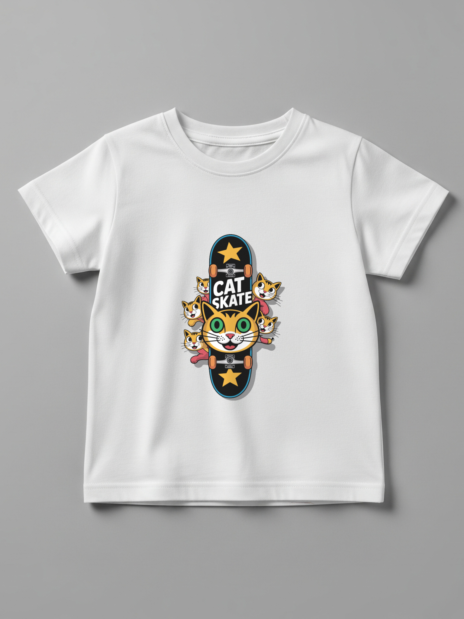 White Color Skateboard Printed T-shirt Pure Cotten. RivenRioOriginal