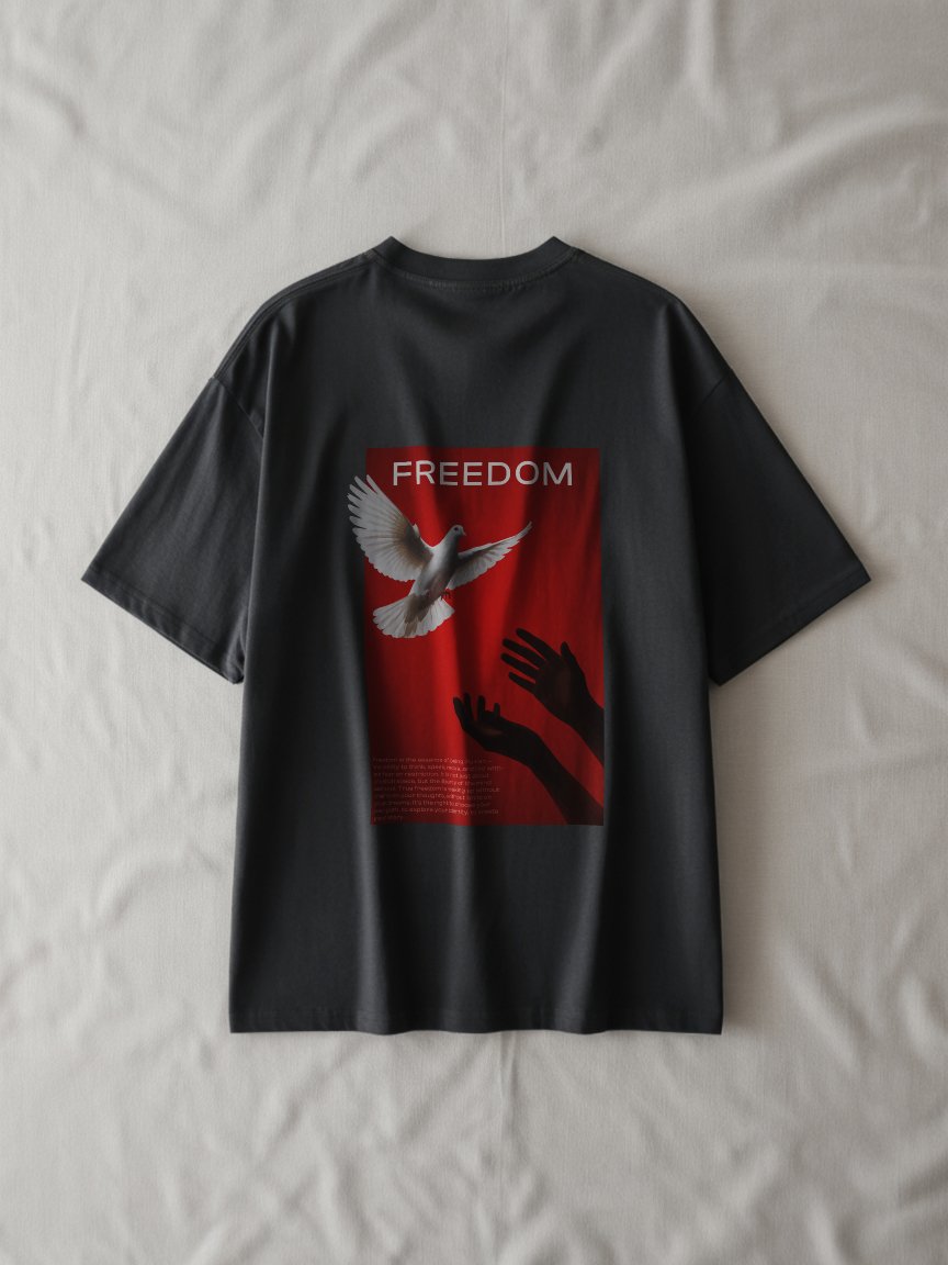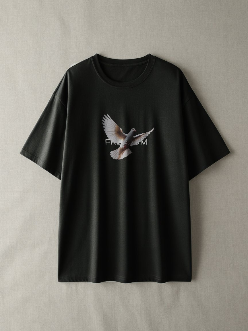 Men Black Color Freedom Pigeon Printed Oversize T-shirt. Stylish And Comfort. RivenRioOriginal