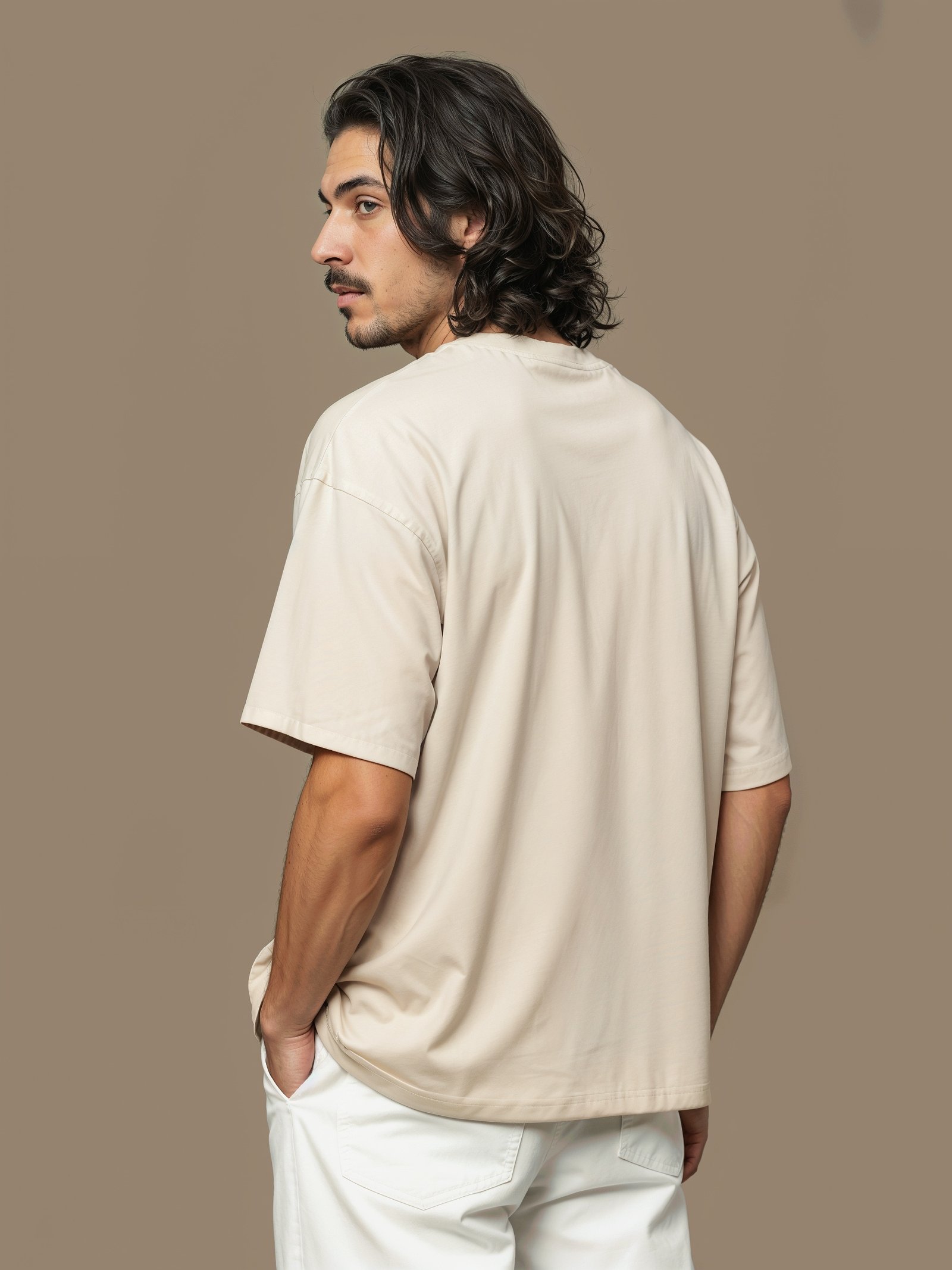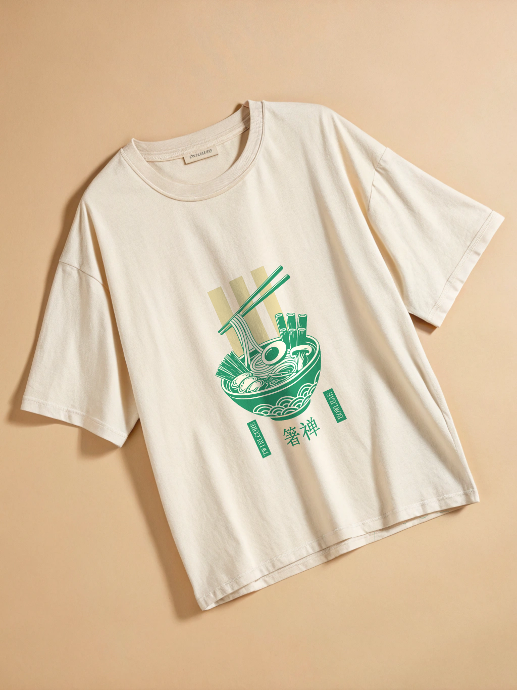 Men Cream Color Ramen Noodles Printed Oversize T-shirt. Stylish And Comfort. RivenRioOriginal