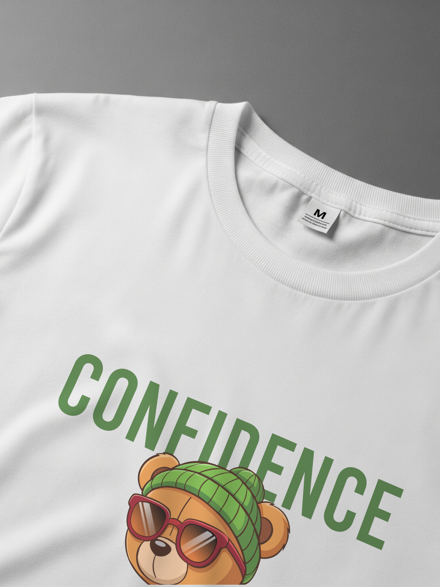 Round Neck Pure Cotton White Regular Cute Bear Printed T-Shirt. Stylish And Comfort. RivenRioOriginal