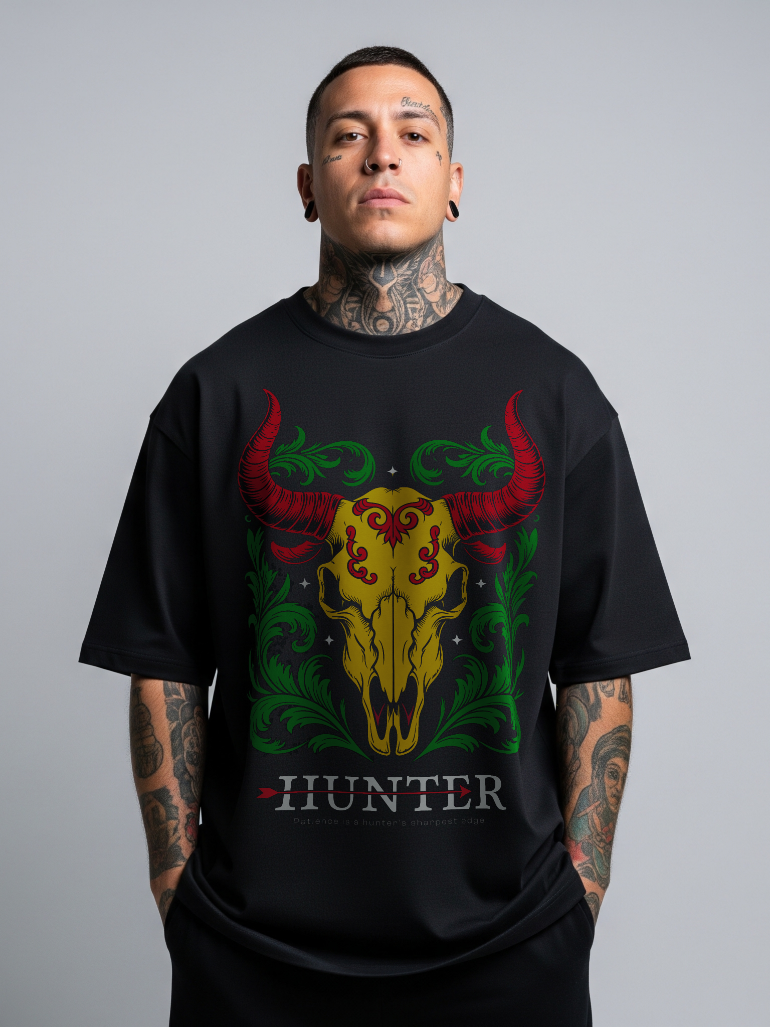 Black Color Hunter Print Oversize T-shirt. Stylish And Comfort. RivenRioOriginal