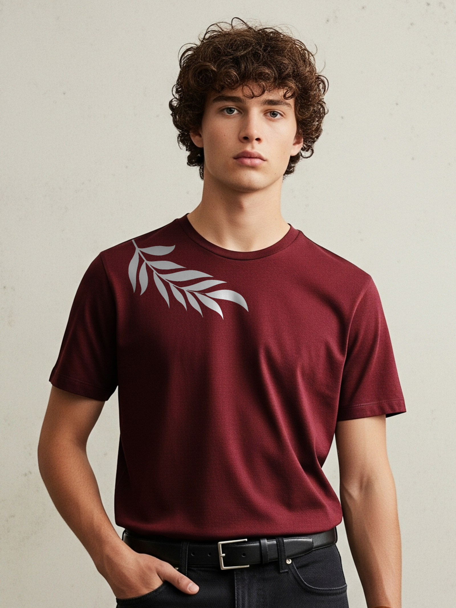 Round Neck Pure Cotton Maroon Regular Fit Graphic Print T-Shirt. Stylish And Comfort. RivenRioOriginal