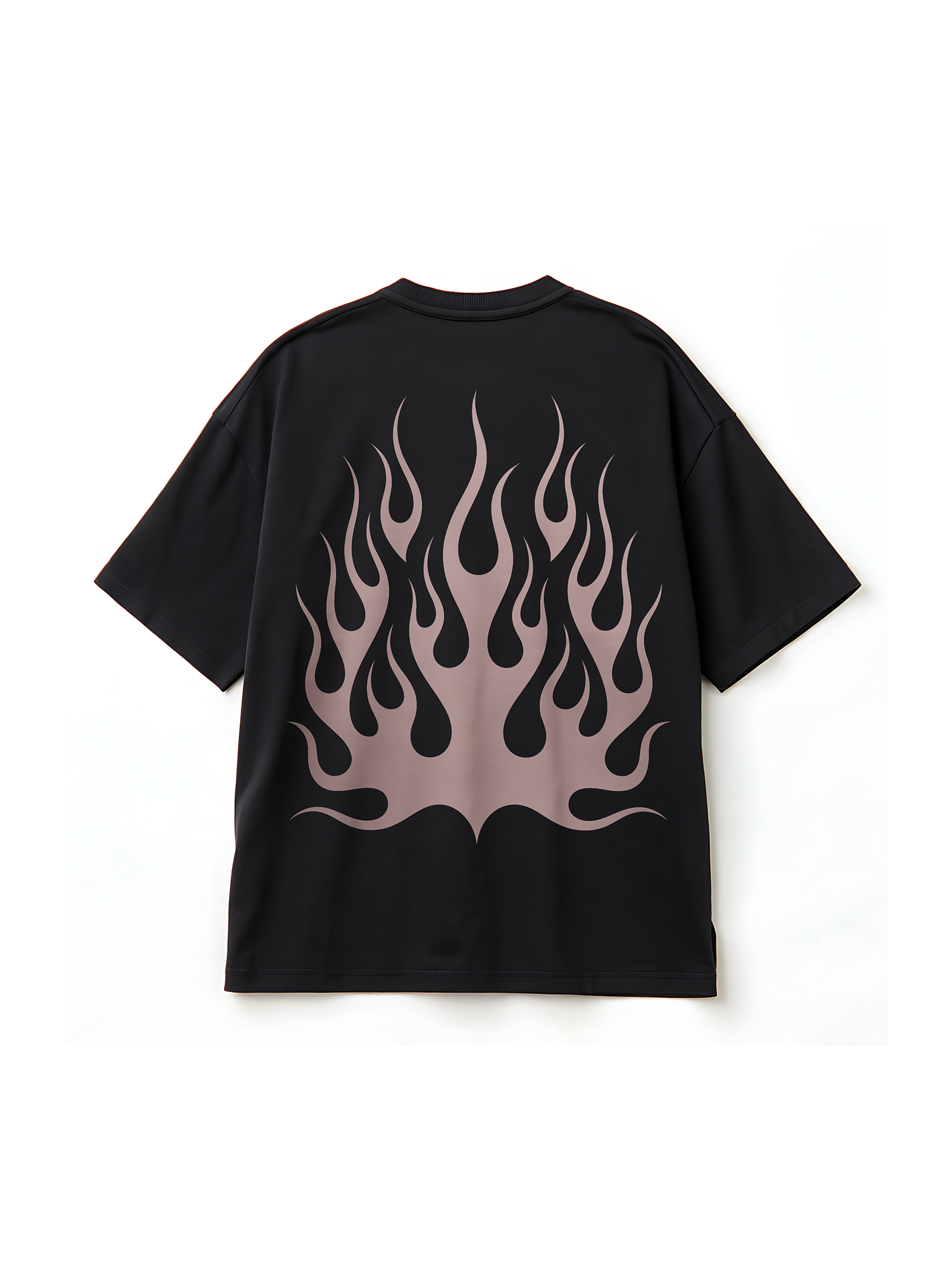Street Wear Black Rond Neck Drop Shoulder Flame Graphic Print Oversize T-shirt. Stylish And Comfort. RivenRioOriginal