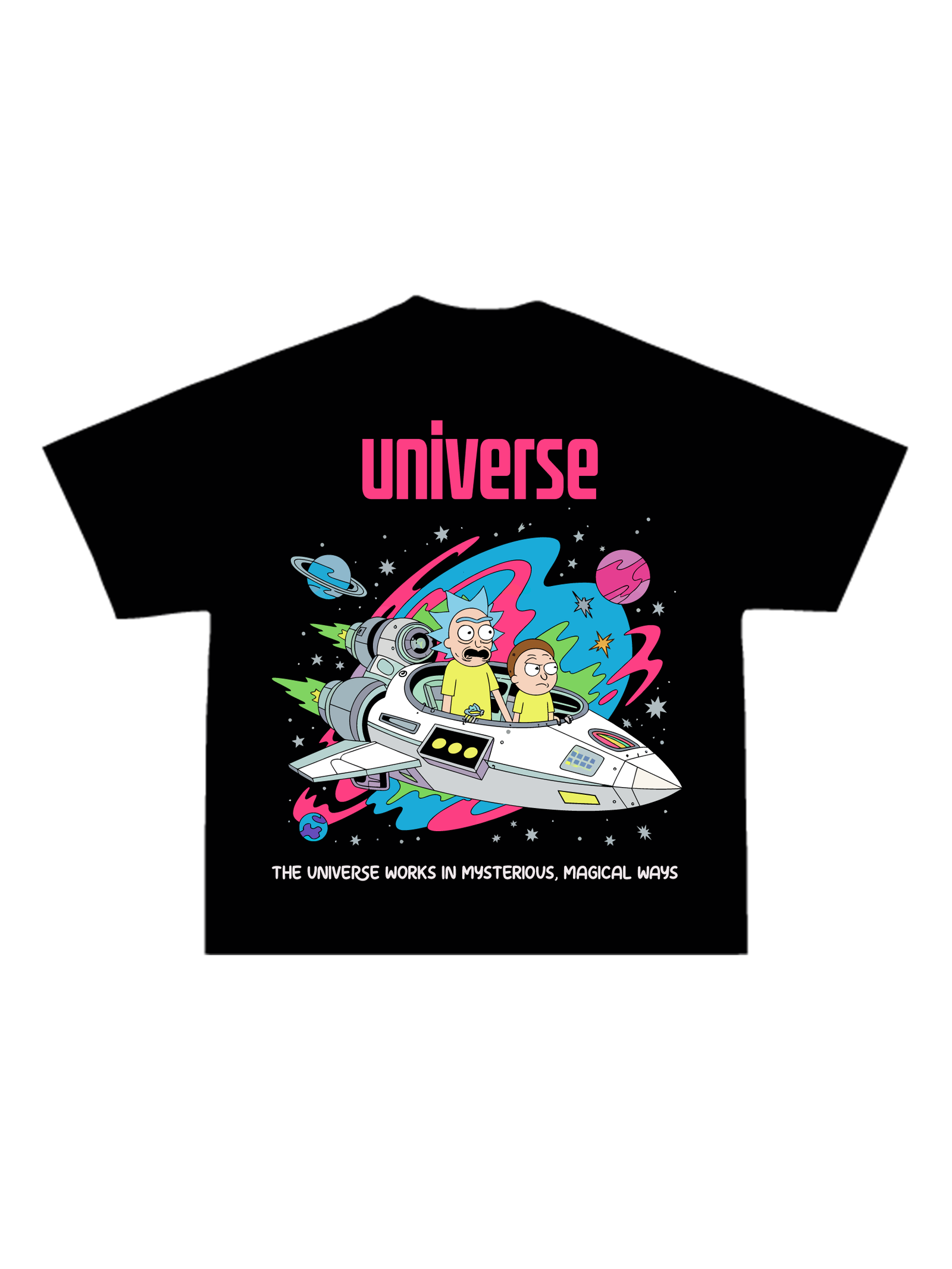 Street Wear Black Rond Neck Drop Shoulder universe Graphic Print Oversize T-shirt. Stylish And Comfort. RivenRioOriginal