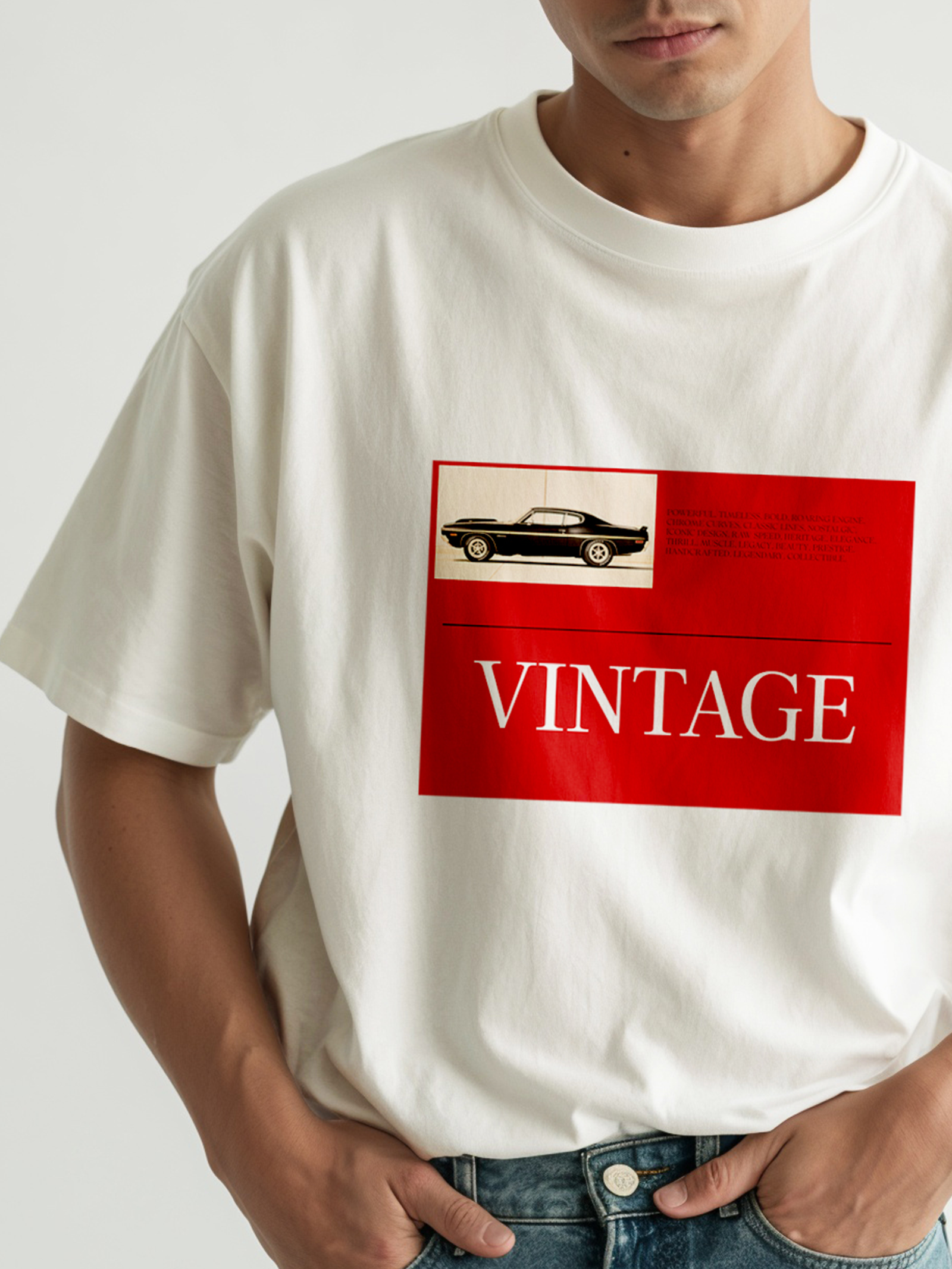 Men Vintage Supercar White Color Graphic Oversize T-shirt. Stylish And Comfort. RivenRioOriginal